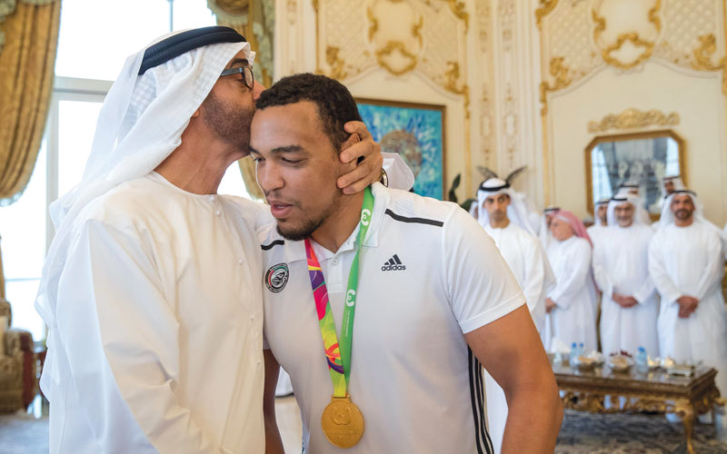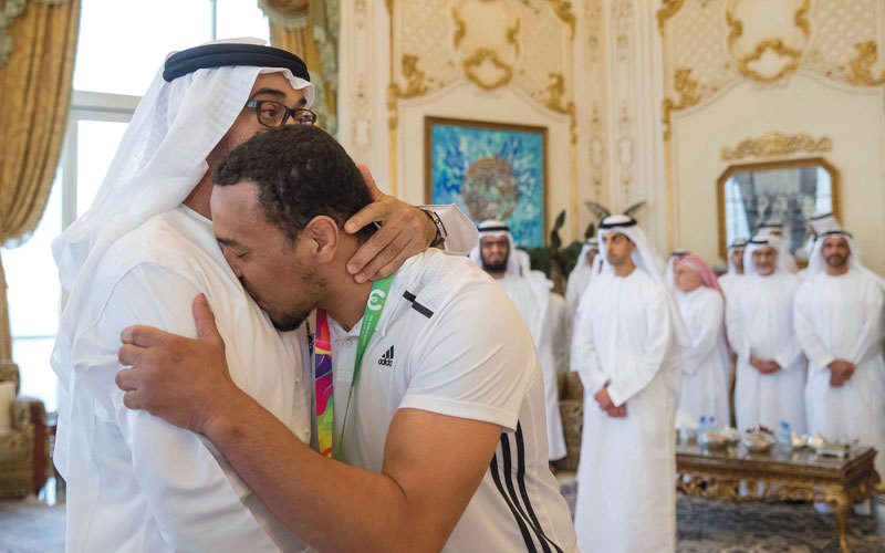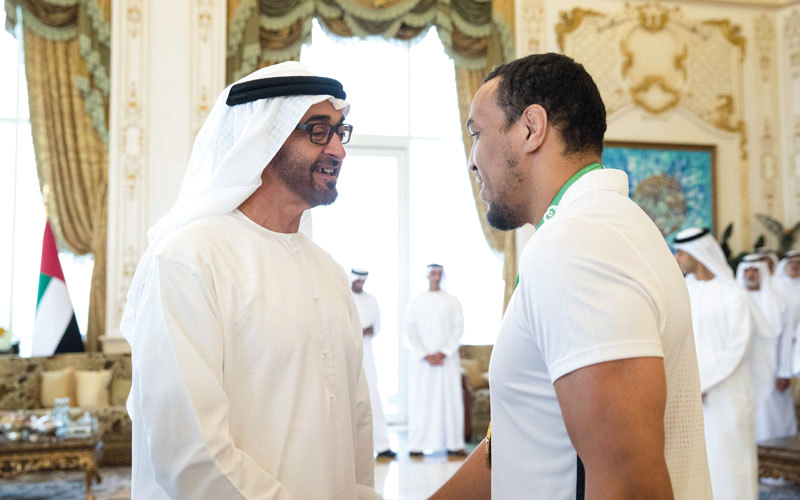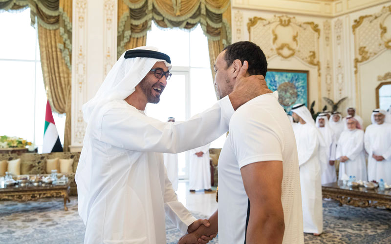 محمد بن زايد يستقبل البطل العالمي فيصل الكتبي