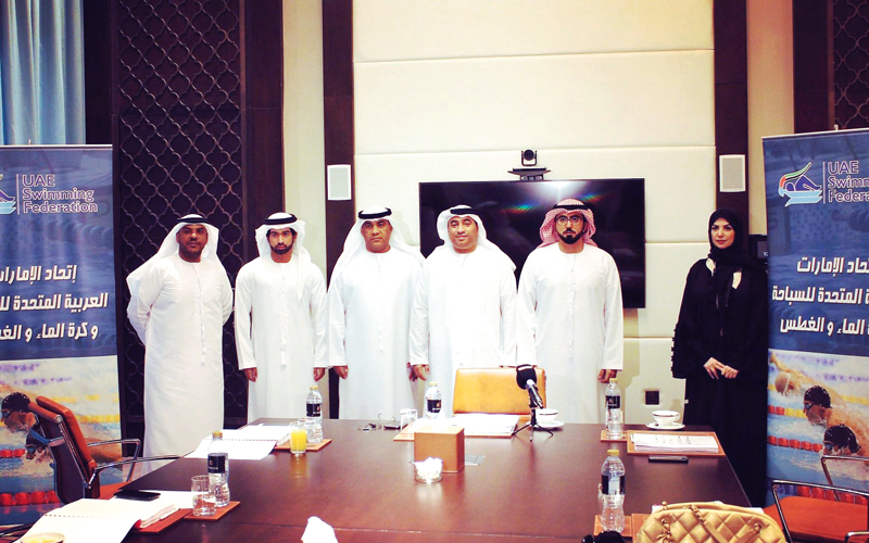 رئيس وأعضاء اتحاد السباحة خلال الاجتماع. من المصدر