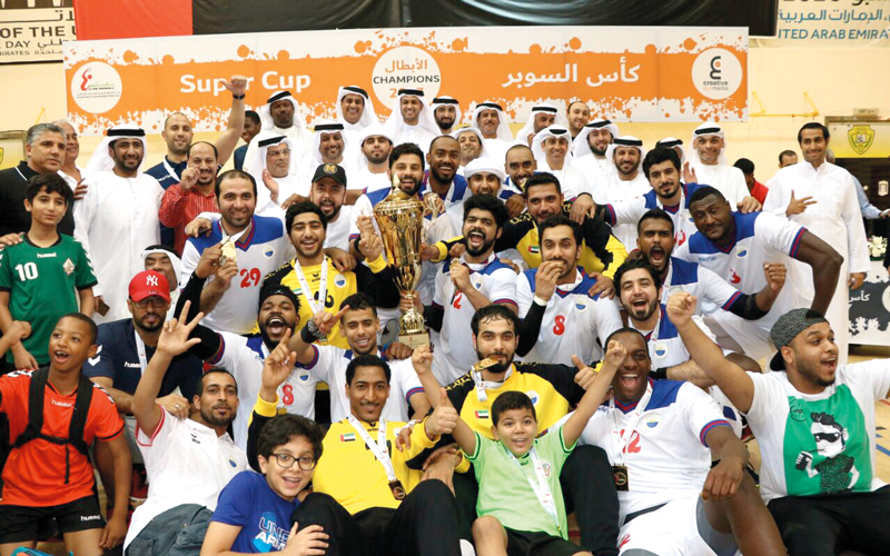 الشارقة متوجاً بلقب «سوبر كرة اليد» على حساب شباب الأهلي دبي. من المصدر