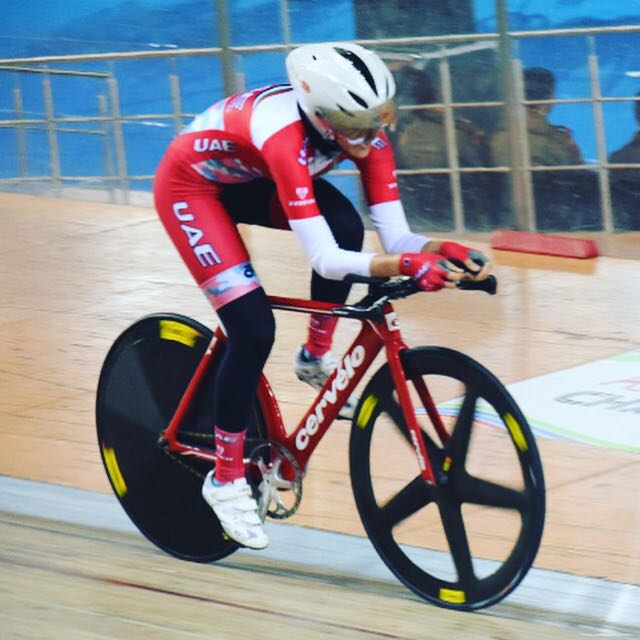 فازت لاعبة منتخب إناث الدراجات صفية مختار الصايغ، على المركز الرابع في سباق المطاردة الفردية، الذي أقيم صباح اليوم في ختام مشاركة شباب وإناث الدراجات في كأس آسيا للمضمار في الهند، وحققت صفية المركز الرابع في السباق الذي شاركت فيه متسابقات من الهند وأندونيسيا والولايات المتحدة وسيرلانكا وأوزبكستان بعد نجاحها في تسجيل رقم عربي جديد على مستوى الإناث وقدره 2,48 دقيقة بمعدل سرعة متميز بلغ 48 كم/ساعة وهو إنجاز رائع لفتيات الإمارات يضاف الي الإنجازات التي تحققت في اليوم الأول والمتمثلة في فوز طرفه محمد حبش، ببرونزية سباق السرعة الفردية وتحقيقها رقم عربي جديد وفوزها مع صفية الصايغ ببرونزية السرعة الفرقية وهي نتائج تعكس مدى تطور مستوى اللاعبات واكتسابهن ثقة المشاركة في البطولات الآسيوية ومنافستهن على الميداليات الملونة لأول مرة في تاريخ مسيرة الدراجة النسائية الإماراتية .