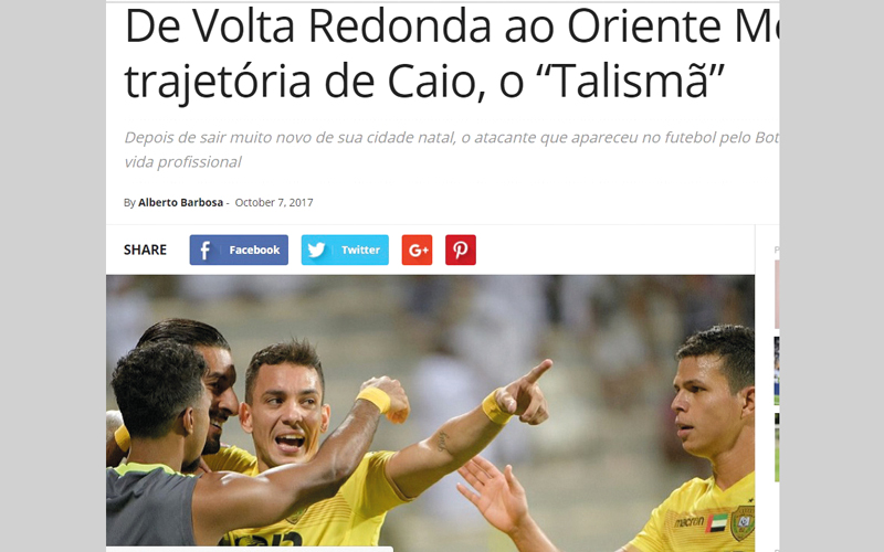 وقال كايو لصحيفة «لانسي» البرازيلية إنه يشعر بسعادة غامرة للعبه مع نادي الوصل، ووجوده في دبي، موضحاً: «أشعر بسعادة الحياة في مدينة دبي الأنيقة، لقد سجلت 55 هدفاً في 65 مباراة، ولاشك في أن الاستقرار أمر رائع، وأن هذه التجربة جيدة جداً بالنسبة لي».