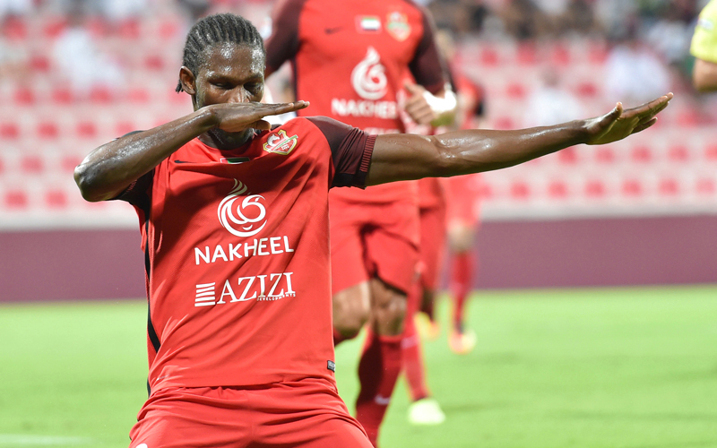 ديوب يحتفل بتسجيل الهدف الأول لشباب الأهلي. تصوير: مصطفى قاسمي