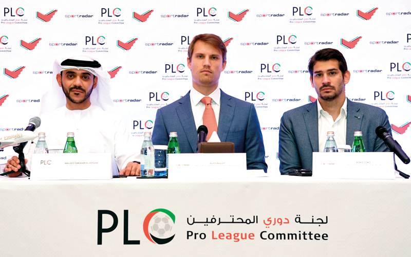 جاء ذلك خلال المؤتمر الصحافي، الذي عقدته لجنة دوري المحترفين ظهر أمس، بفندق دوست ثاني أبوظبي، بحضور المدير التنفيذي بالإنابة للجنة دوري المحترفين وليد الحوسني، ومدير إدارة الاتصال والشؤون العامة في «سبورتس رادار» أليكس أنجلوت، ومدير الإعلام الرقمي الرياضي لمنطقة آسيا والشرق الأوسط في «سبورتس رادار»، روكو كوكو.