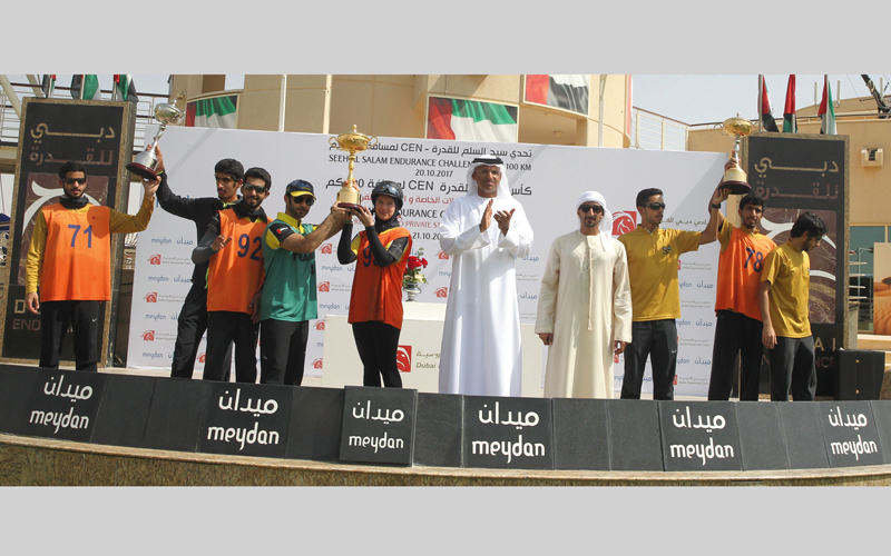 شهد صاحب السمو الشيخ محمد بن راشد آل مكتوم، نائب رئيس الدولة رئيس مجلس الوزراء حاكم دبي، أمس، سباق كأس الوصل للقدرة لمسافة 100 كيلومتر المخصص للمواطنين والإسطبلات الخاصة، الذي أقيم في مدينة دبي الدولية للقدرة بسيح السلم، بمشاركة 174 فارساً وفارسة، من مختلف الإسطبلات داخل الدولة.