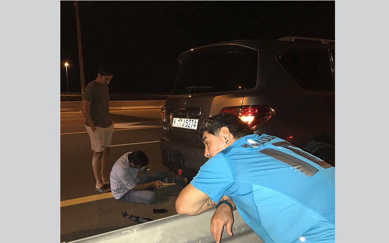 حكم ينقذ مارادونا بعد تعطل سيارته على طريق الفجيرة - دبي