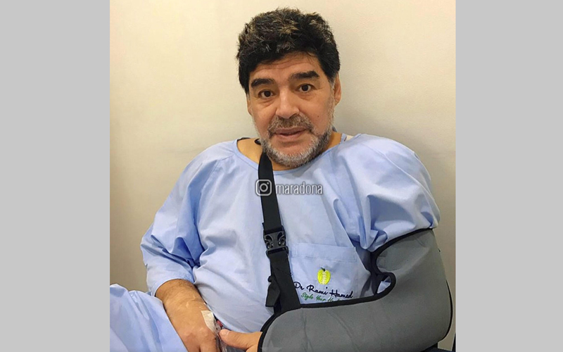 نشر مدرب فريق الفجيرة الأسطورة الارجنتينية مارادونا صورة له على حسابه الشخصي على موقع انستغرام بعد ان اجرى عملية جراحية في أربطة الكتف، وكتب مارادونا، معلقا على الصورة "اخبركم بأنني اجريت اليوم عملية جراحية في أربطة الكتف، كان ينبغي ان افعل ذلك منذ فترة ولكني كنت أؤجلة دائما لشيء أو لآخر، استمرت العملية ساعة ونصف ونجحت، أرسل تحياتي للجميع".