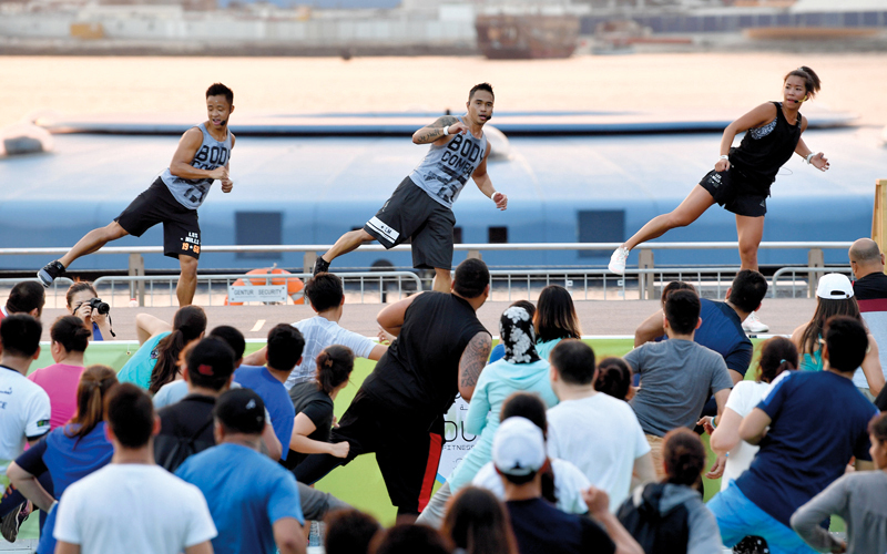 وعلى الرغم من قصر مدة التحدي الرياضي نوعاً ما، الذي لم يتجاوز حدود النصف ساعة تقريباً، إلا أن جميع فئات الحضور تفاعلت مع الحركات الرياضية الراقصة، التي صاحبتها أجواء موسيقية حماسية، ضاعفت من رغبة كل شخص في قبول التحدي جنباً إلى جنب مع الآخرين، وذلك في مجموع التحديات والأنشطة التي امتدت على طول الممر المطل على البحر، قبالة المقاهي والمطاعم التي اكتظت هي الأخرى بالزوار والسائحين، الذين لم يخفوا فضولهم بمتابعة الفعالية.