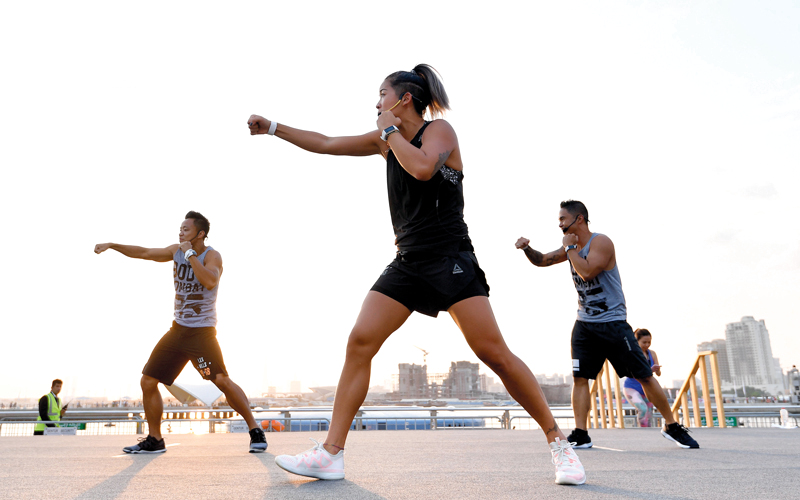 ومنذ اللحظات الأولى لانطلاق التحديات، كان اهتمام أغلبية الحضور واضحاً بمنصة «بودي كومبات ـ ليه ميلز»، التي استهدف نسق تمارينها المتصاعد، أغلبية المتعطشين إلى «اللياقة»، لاسيما أن التركيز على الإيقاع المتسارع والمحفز على الحركة السريعة والمكثفة، كانا أبرز سمات هذه المنصة الرائدة التي سجلت نجاحاً لافتاً في استقطاب غالبية الناس طوال فترات التحدي السابقة، باعتبار تركيز برنامج لياقتها المتخصص على مزيج من التمارين المتنوعة المعتمدة على مبادئ منتقاة من بعض الرياضات القتالية الشهيرة مثل رياضة الكاراتيه، ورياضة الملاكمة والكابويرا، إلى جانب أنواع من الرياضات الحماسية الأخرى.
