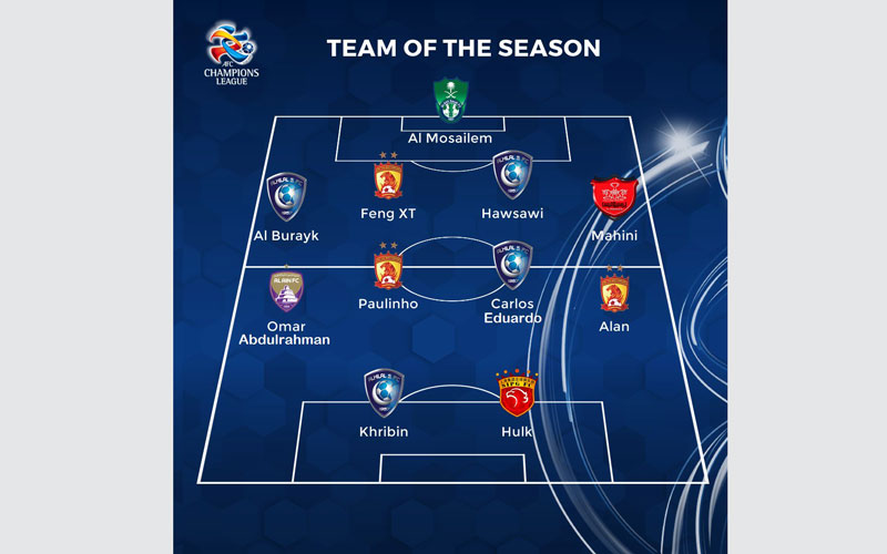 ولم تضم القائمة أي لاعب من فريق أوروا ريد، وكان الهلال السعودي صاحب النصيب الأكبر بوجود 4 لاعبين هم أسامة هوساوي ومحمد البريك وكارلوس وإدواردو وعمر خريبين، وحارس مرمى الأهلي السعودي ياسر المسيلم، و3 لاعبين من غوانزهو الصيني، فينغ والمتقل إلى برشلونة، البرازيلي باولينيو ومواطنه ألان، ومهاجم شنغهاي، البرازيلي هالك، ومدافع بيروزي الإيراني حسين مهيني، ونجم العين عمر عبد الرحمن.