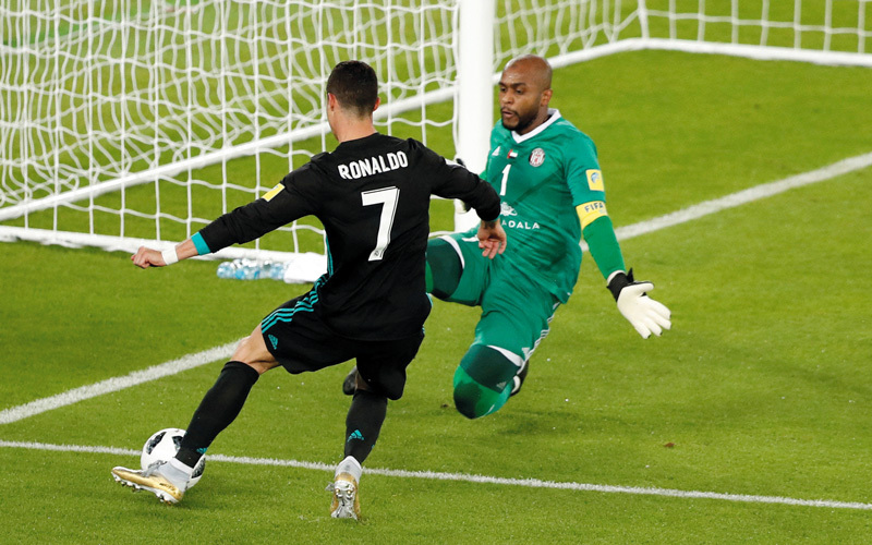 قائد الجزيرة، علي خصيف، كان بالمرصاد لكرات أفضل لاعب في العالم وهداف ريال مدريد، كريستيانو رونالدو، في نصف نهائي كأس العالم للأندية.