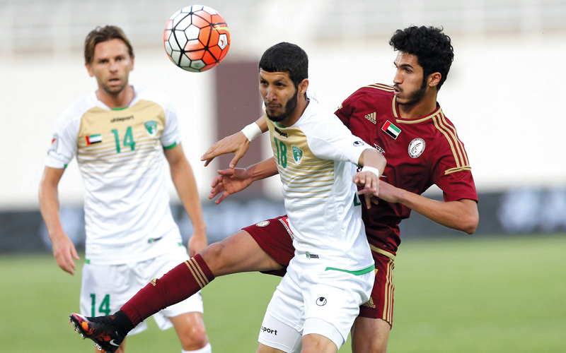 لاعب فريق الإمارات الحسين صالح في مباراة سابقة أمام الوحدة. تصوير: إريك أرازاس
