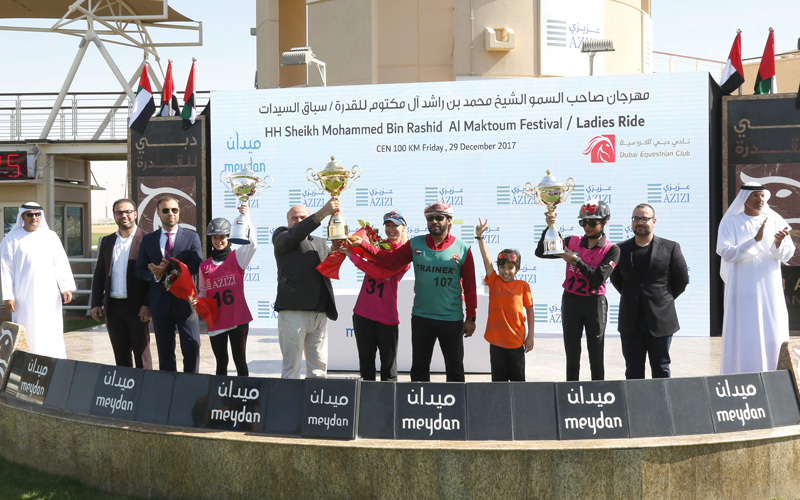 وكان صاحب السمو الشيخ محمد بن راشد آل مكتوم، نائب رئيس الدولة رئيس مجلس الوزراء حاكم دبي، قد شهد، أمس، ثاني أيام مهرجان محمد بن راشد للقدرة، بإقامة سباق السيدات لمسافة 100 كيلومتر، في مدينة دبي الدولية للقدرة بسيح السلم، بحضور سمو الشيخ حمدان بن محمد بن راشد آل مكتوم، ولي عهد دبي، بمشاركة 189 فارسة من مختلف الإسطبلات في الدولة.