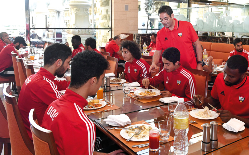 وقال بلحوز لـ«الإمارات اليوم» إن الجهاز الطبي للمنتخب يبدأ بعد المباراة مباشرة بإعطاء وجبات للاعبين تؤدي إلى ارتفاع تدريجي في الطاقة، تحتوي على فيتامينات ومكملات غذائية.