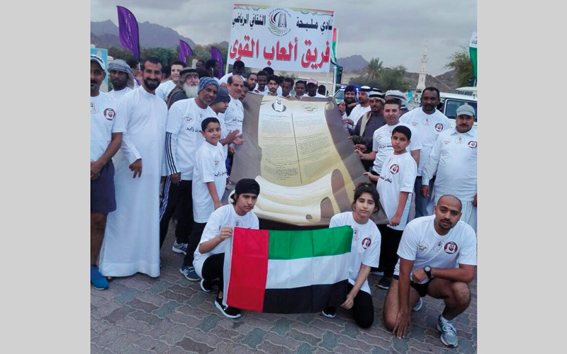 العداؤون تبادلوا حمل رسالة الوفاء خلال المسافة الممتدة بين حتا والفجيرة. |