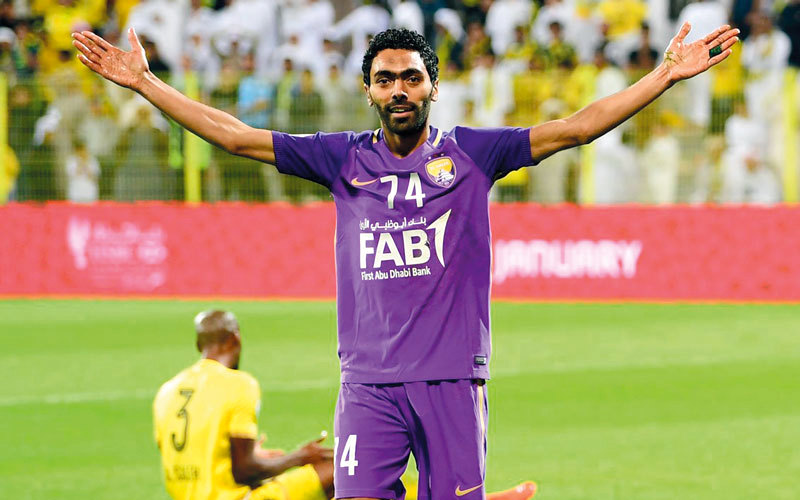 الشحات يحتفل بهدفه مع العين في لقاء الوصل. من المصدر