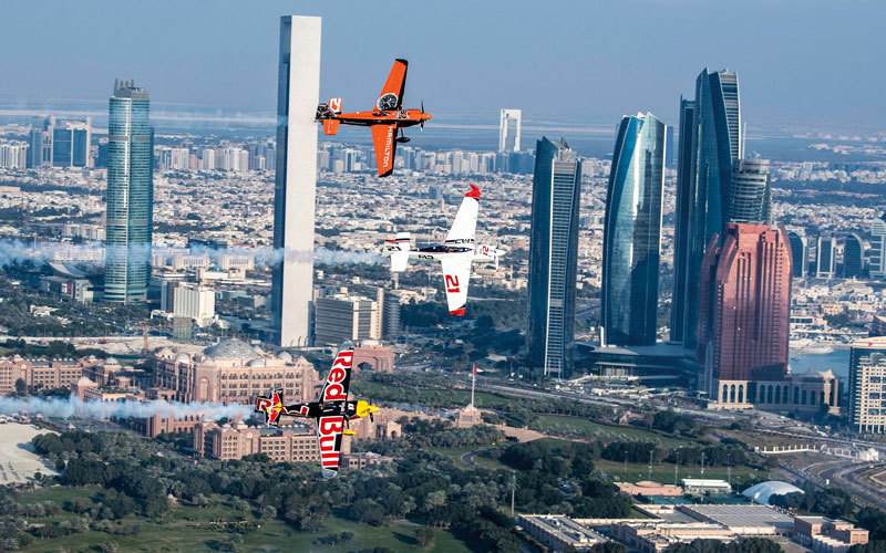 تستضيف سماء أبوظبي سباق ريد بُل الجوي، بمشاركة 13 طياراً يحلقون بسرعة تصل إلى 370 كيلومتراً في الساعة، بقوة دافعة تبلغ 10 درجات، خلال فبراير المقبل.