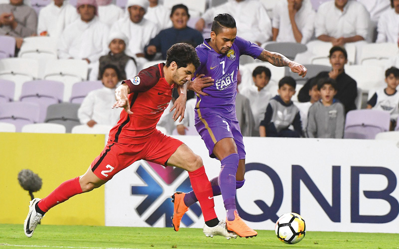 كايو يقود هجمة للعين وسط رقابة من الريان. تصوير: إريك أرازاس
