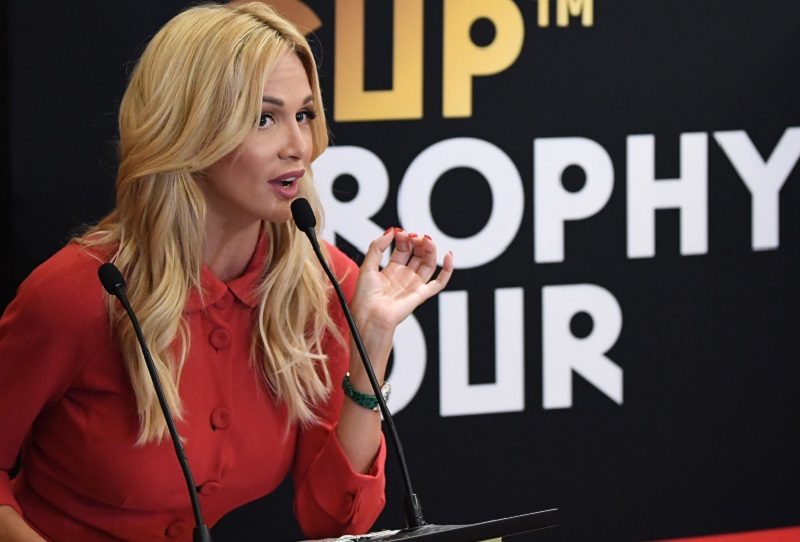 ورافقت الكأس الذهبية فيكتوريا لوبيريفا ملكة جمال روسيا السابقة وسفيرة كأس العالم 2018، فضلا عن مدير الشراكات التسويقية في الاتحاد الدولي لكرة القدم فيفا لوكاس راشو.