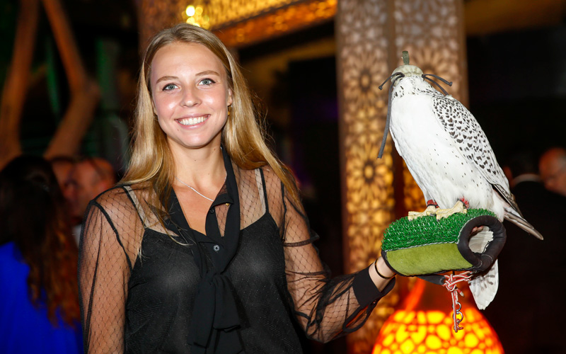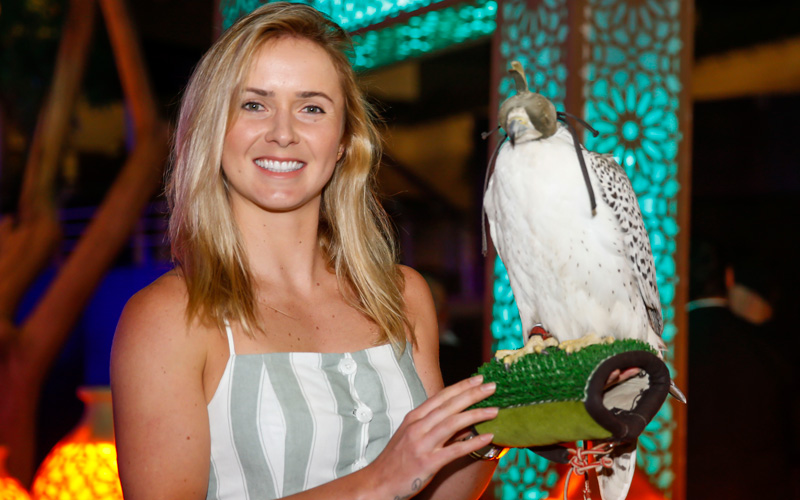 وتقدمت حاملة اللقب والمصنفة الرابعة على العالم الحسناء الأوكرانية إلينا سفيتولينا قائمة النجمات اللواتي حرصن على اختبار تجربة الصقر الإماراتي والتعرف عن كثب على مهارات مدربي الصقور وكيفية الاعتناء به واستخدامه في رحل الصيد.