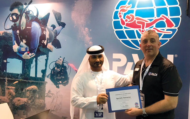كرّم اتحاد مدربي الغوص المحترفين مدرب الغطس الإماراتي، عبدالرحمن الأميري، بعدما بات أول مدرب غطس في الوطن العربي يغوص تحت الجليد، ويحصل على شهادة معترف بها من المنظمة كمدرب غوص تحت الجليد.