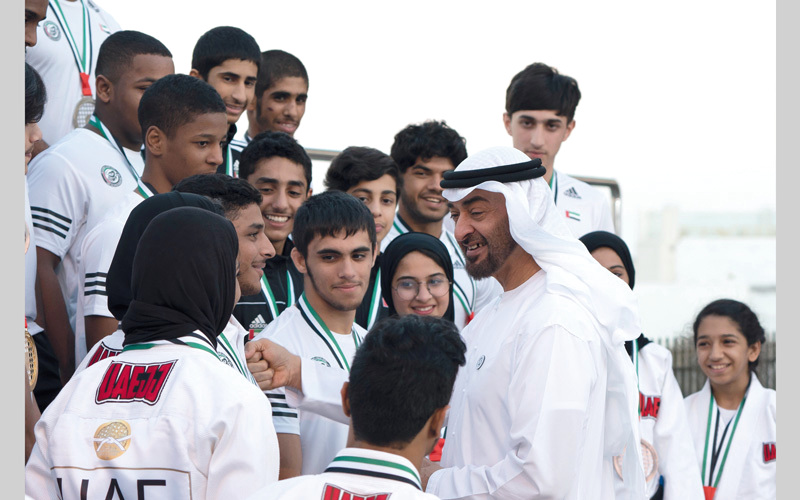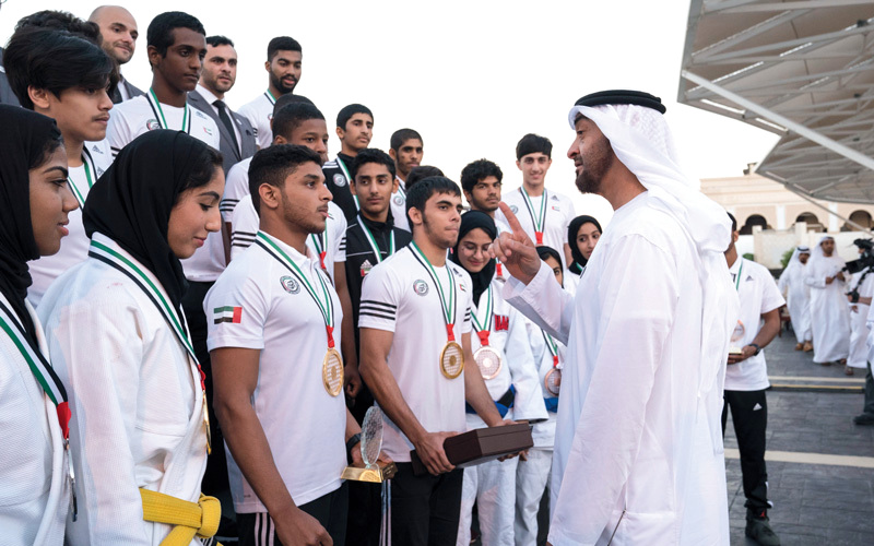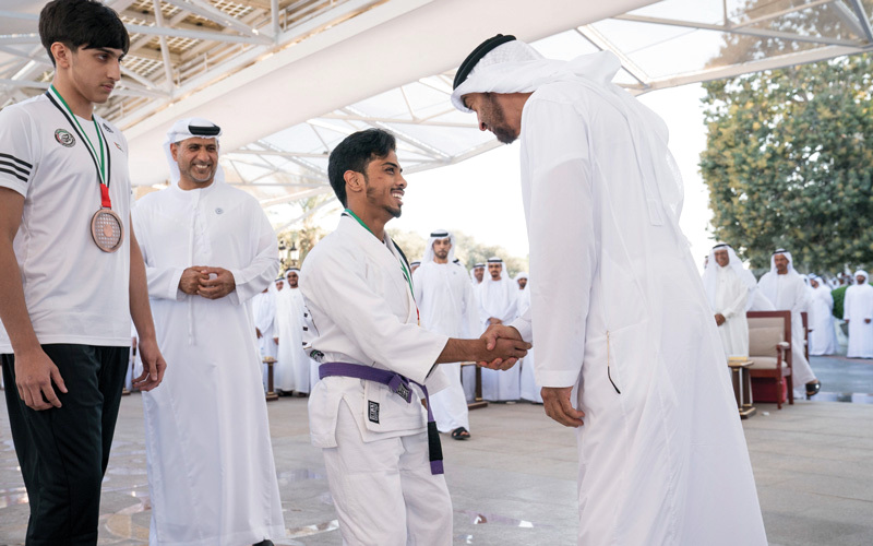 محمد بن زايد يستقبل أبطال منتخب الجوجيتسو للشباب والناشئين