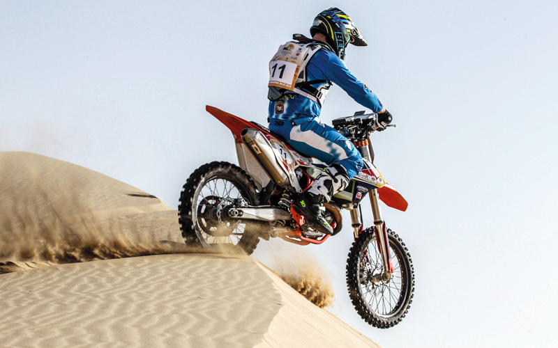 القاسمي اضطر للانسحاب في اليوم الأول، بسبب أعطال ميكانيكية بسيارته. صدارة جنوب إفريقية للدراجات النارية شهدت منافسات الجولة الأولى من «باها» كأس العالم للدراجات النارية، تفوق الدراج الجنوب إفريقي المقيم في دبي، مارك أرون، الذي أنهى اليوم الأول في الصدارة، بقطعه المراحل الخاصة لهذا اليوم على متن دراجة «كيه تي إم 450»، بزمن بلغ ساعة و59 دقيقة و55 ثانية، بفارق 32 ثانية فقط عن الدراج الكويتي محمد جعفر، الذي حل ثانياً على متن الدراجة ذاتها، فيما لم يوفق المصنف الأول الإماراتي محمد البلوشي في تحقيق نتيجة أفضل من المركز الرابع، بزمن بلغ ساعتين وثلاث دقائق وست ثوانٍ. |