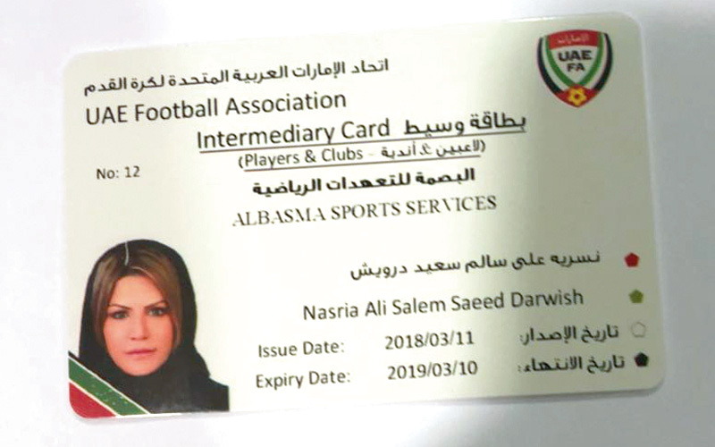 وقالت نسرين بن درويش، التي عملت سابقاً كعضو في مجلس إدارة اتحاد الدرّاجات الهوائية لـ«الإمارات اليوم»: «أنهيت الإجراءات كافة التي تسمح لي بالعمل في هذا المجال، بعدما حصلت من اتحاد الكرة بشكل رسمي على رخصة وسيط لاعبين».