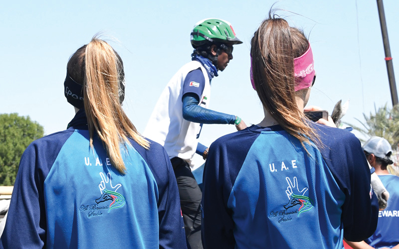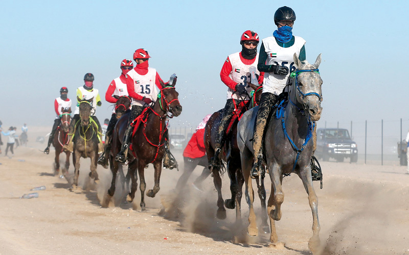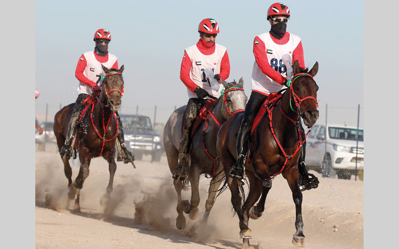 • الفارس عبدالله غانم المري، يفوز بالمركز الأول على صهوة الفرس «جوبان تايغر» المملوكة إلى «إسطبلات إف 3». • 120 كيلومتراً مسافة كأس اليمامة للقدرة المخصص للأفراس.. و210 فرسان يشاركون. |
