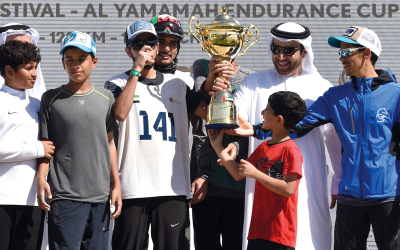 شهد صاحب السموّ الشيخ محمد بن راشد آل مكتوم، نائب رئيس الدولة رئيس مجلس الوزراء حاكم دبي، أمس، كأس اليمامة للقدرة المخصص للأفراس لمسافة 120 كيلومتراً، في مدينة دبي الدولية للقدرة في سيح السلم، ضمن مهرجان ولي عهد دبي للقدرة، بحضور سموّ الشيخ حمدان بن محمد بن راشد آل مكتوم، ولي عهد دبي، ومشاركة 210 فرسان وفارسات من مختلف الأندية والإسطبلات داخل الدولة وخارجها.