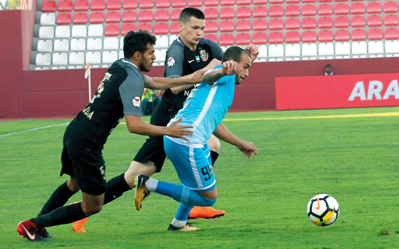 دبا لم يقوَ على عبور دفاع شباب الأهلي. من المصدر
