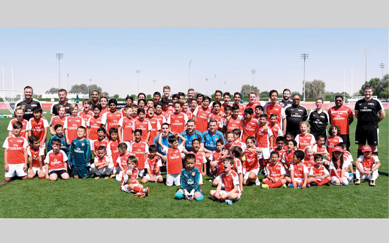 وافتتحت مدرسة أرسنال لكرة القدم في دبي عام 2009، كمشروع مشترك بين «طيران الإمارات» والنادي الإنجليزي الشهير، وتستقبل المدرسة الفتيان والفتيات من جميع الأعمار والمستويات، ومنذ ذلك الحين، انتسب إلى المدرسة أكثر من 2000 طفل، وزارها عدد من نجوم أرسنال للقاء الطلبة، وتقديم بعض النصائح وفنون اللعبة للناشئين، ومنهم: مسعود أوزيل وناشو مونريل وداني ويلبيك، وقد صمم برنامج التدريب لمساعدة الناشئين الواعدين على تطوير مهاراتهم، والارتقاء بمستوياتهم في اللعب، وضمان توفير منصة قوية ونظام دعم لهم، لتحفيز قدراتهم الرياضية.