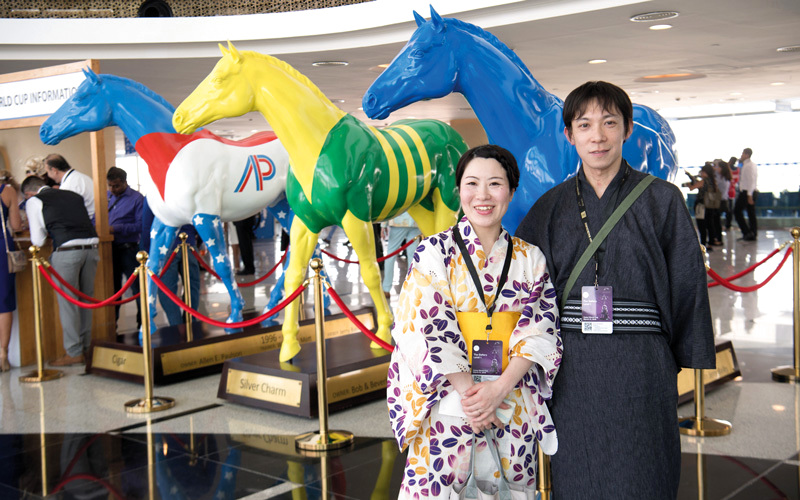 عروسان يابانيان يفتتحان شهر العسل بمشاهدة كأس دبي العالمي