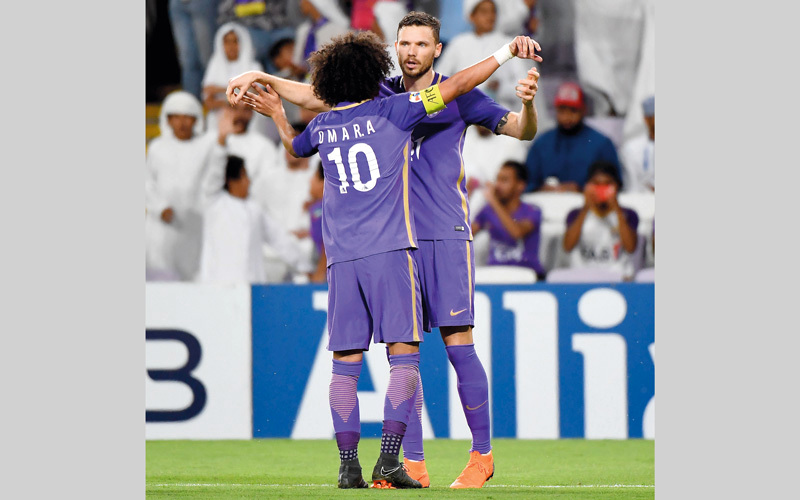 بيرغ يحتفل بفوز العين على الهلال مع عموري. تصوير: إريك أرازاس