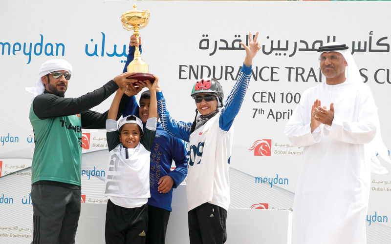 فازت الفارسة نسرين علي خالد بلقب كأس المدربين للقدرة لمسافة 100 كيلومتر، أمس، في مدينة دبي الدولية للقدرة بسيح السلم، بمشاركة 232 فارساً وفارسة من مختلف الإسطبلات والأندية داخل الدولة، وذلك في ختام موسم سباقات القدرة بمدينة دبي الدولية للقدرة.