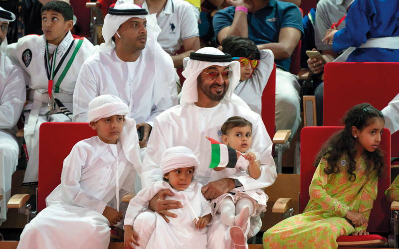 محمد بن زايد تابع، إلى جانب عدد من أحفاده، النزالات وتتويج اللاعبين الصغار. |