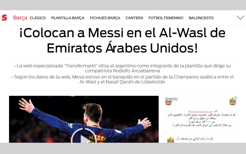 اعتذر موقع «ترانسفير ماركت» العالمي«المختص بسوق انتقالات اللاعبين حول العالم، بعدما وضع عن طريق الخطأ النجم الأرجنتيني ليونيل ميسي ضمن قائمة نادي الوصل في مباراته الماضية أمام ناساف قارشي الأوزبكي في الجولة السادسة من مباريات دوري أبطال آسيا.