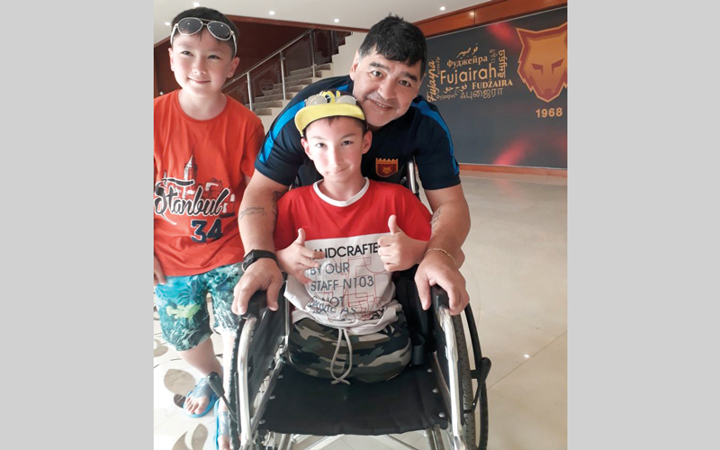 مارادونا يحقق أمنية طفل كازاخي «مبتور الساقين»