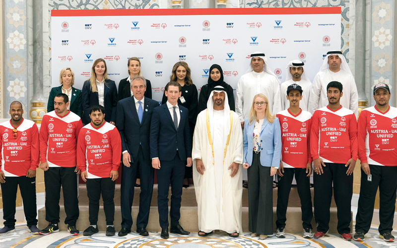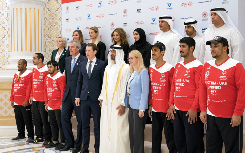 التقى صاحب السموّ الشيخ محمد بن زايد آل نهيان، ولي عهد أبوظبي نائب القائد الأعلى للقوات المسلحة، وسيباستيان كورتز، مستشار جمهورية النمسا، أمس، في قصر الرئاسة وفداً من اللجنة العليا للأولمبياد الخاص للألعاب الشتوية في النمسا، وأعضاء اللجنة العليا للأولمبياد الخاص «أبوظبي 2019»، وأعضاء منتخب الأولمبياد الخاص الإماراتي لكرة القدم.