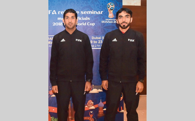الحكم الإماراتي محمد عبدالله حسن (يسار) وزميله محمد أحمد يوسف. من المصدر