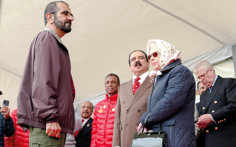 محمد بن راشد يلتقي ملكـة بريطانيا بحضور ملك البحرين.. على هامش سباق «ويندسـور الملكي» للقدرة