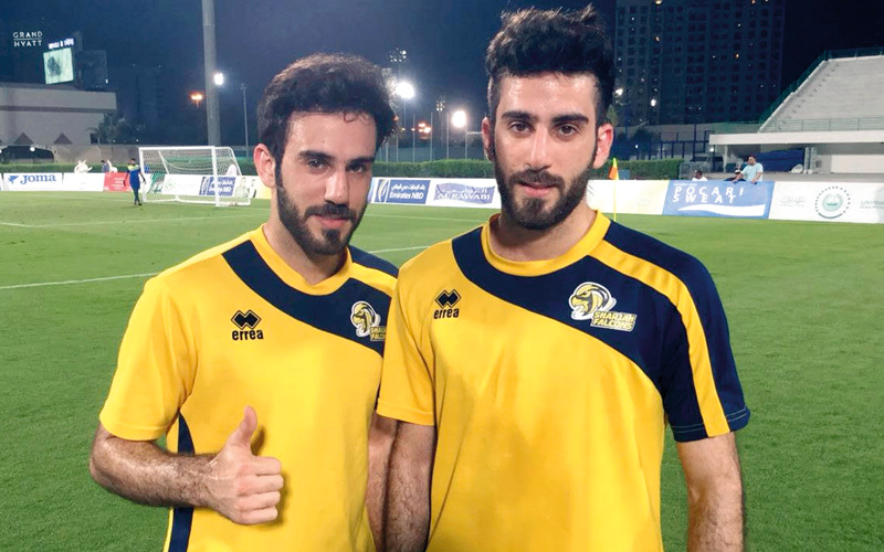 التوأم صلاح وعبدالعزيز مسعود بألوان فريق الشارقة فالكون. تصوير: أسامة أبوغانم