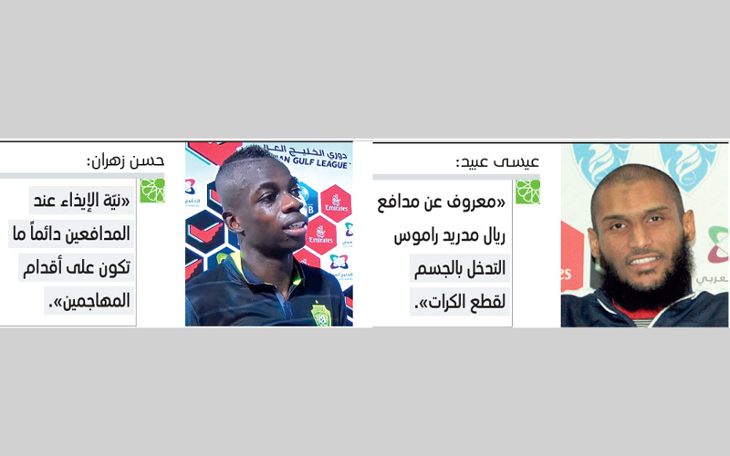 أما مدافع فريق عجمان والوصل السابق حسن زهران، فقال «إن نية الإيذاء عند المدافعين دائماً ما تكون على أقدام المهاجمين، وفي حال فكر مدافع في إيذاء لاعب، فإن تركيزه دائماً يكون على الأقدام، ولا ننظر إلى أعلى الجسم، وهو ما يجعلني متأكداً عدم وجود أي نية للإيذاء أو تعمد الإصابة، وهي نظرة دفاعية، والدليل على ذلك عدم احتساب أي خطأ من الحكم، وإن كان هناك أي خطأ فكان الحكم سيحتسبه بالتأكيد، وفي أقصى أنواع العقوبات سيحصل اللاعب على بطاقة صفراء، ولكنها لن ترتقي إلى ذلك».