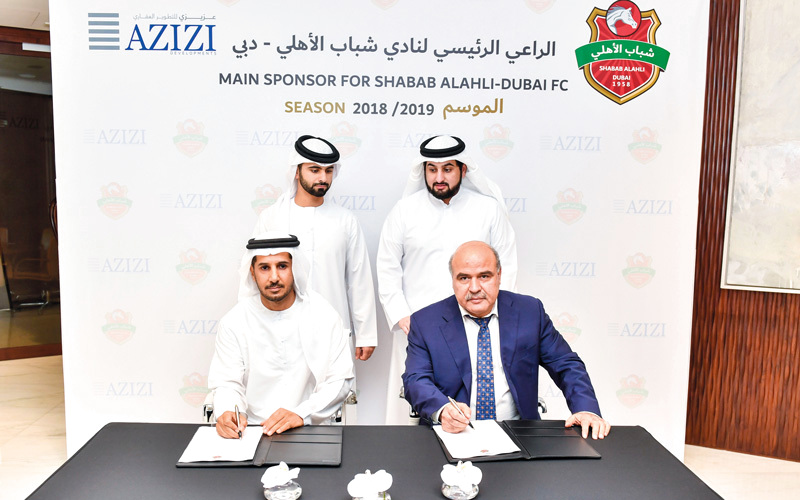 جاء ذلك، بمناسبة تجديد عقود الرعاية التسويقية لفرق شباب الأهلي، التي شهدها سموّ الشيخ أحمد بن محمد بن راشد آل مكتوم، رئيس مجلس إدارة نادي شباب الأهلي، وسموّ الشيخ منصور بن محمد بن راشد آل مكتوم، نائب رئيس مجلس إدارة نادي شباب الأهلي رئيس شركة شباب الأهلي لكرة القدم، مع عدد من الشركات والجهات الراعية للموسم الرياضي 2018/2019 وهي: شركة نخيل العقارية، وماي دبي، وشركة عزيزي العقارية، بحضور كل من العضو المنتدب الرئيس التنفيذي لهيئة كهرباء ومياه دبي رئيس مجلس إدارة شركة «ماي دبي»، سعيد محمد الطاير، ورئيس مجلس إدارة شركة «نخيل» العقارية، علي راشد لوتاه، ورئيس مجلس إدارة مجموعة عزيزي، ميرويس عزيزي.