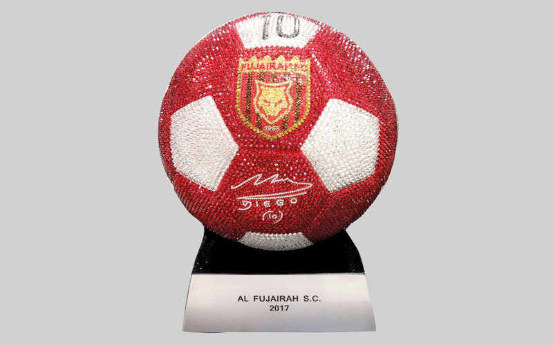 يذكر أن الأسطورة الأرجنتينية دييغو مارادونا وعد لاعبي فريقه السابق الفجيرة مطلع الموسم الماضي لدوري الدرجة الأولى بأن يقدم للأفضل بينهم كرة ثمينة مصنوعة من الكريستال صنعها له فنان كولومبي.