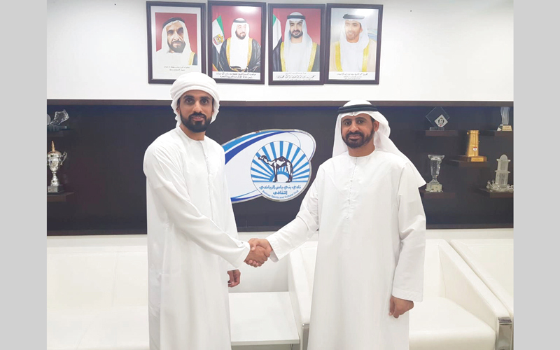 الحارثي والحمادي بعد توقيع العقد. من المصدر