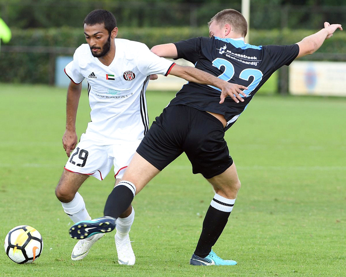 من مباراة الجزيرة وفريق «إي في في» الهولندي. من المصدر