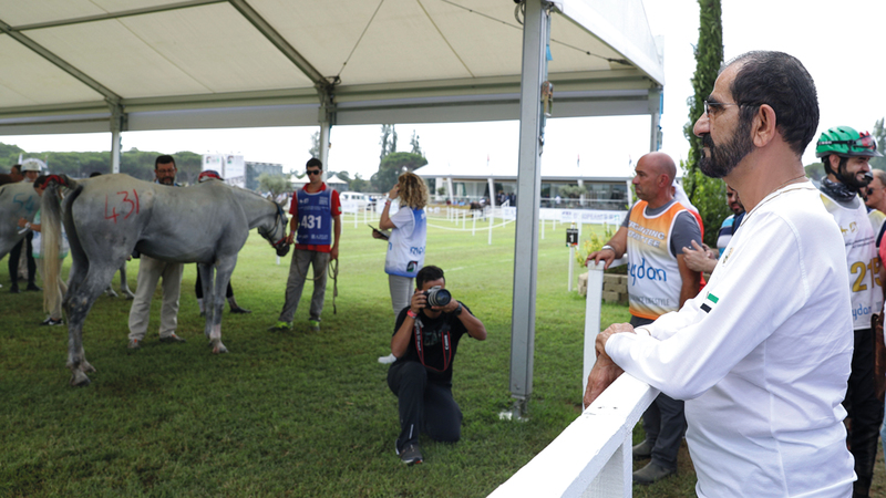 شهد صاحب السمو الشيخ محمد بن راشد آل مكتوم، نائب رئيس الدولة رئيس مجلس الوزراء حاكم دبي، صباح أمس، فعاليات اليوم الختامي لمهرجان محمد بن راشد للقدرة، الذي أقيم في إقليم توسكانا بإيطاليا، بمشاركة أكثر من 500 فارس وفارسة من مختلف دول العالم. وتابع صاحب السمو الشيخ محمد بن راشد آل مكتوم جانباً من مراحل السباق، الذي يعد ضمن البطولات المهمة والمتميزة في موسم القدرة الأوروبية، كما اطمأن سموه على أداء فرسان الإمارات، وجاهزيتهم لبطولة كأس العالم المرتقبة في سبتمبر المقبل بالولايات المتحدة الأميركية.