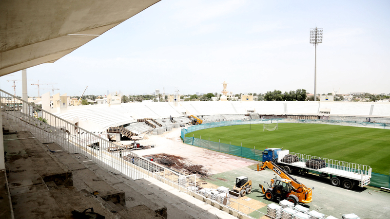 واستعرض تفاصيل نسب الإنجاز في الأعمال، حيث بلغت نسبة العمل في منصة كبار الشخصيات 80%، والتي تضم 450 مقعداً، وفي غرف تبديل الملابس 95%، وفي غرفة الخدمات 99%، وعلى مستوى المدرجات، فقد وصلت النسبة إلى 87% بمجموع كلي 12 ألفاً و900 مقعد، ليصل مجموع نسبة العمل بشكل عام إلى 90%، بينما تمت زيادة عدد غرف التبديل، لتصبح أربع غرف بدلاً من اثنتين، مع مد المدرجات إلى الأسفل لزيادة الطاقة الاستيعابية.