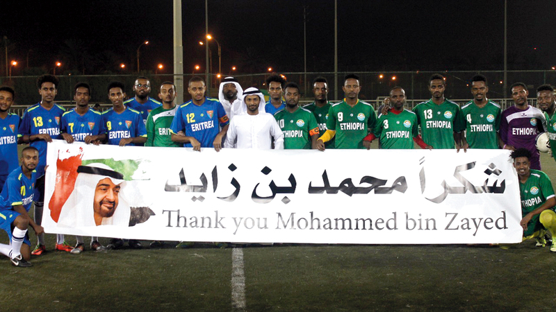 نظم المواطن، سالم الكربي، صاحب مبادرة «ما وراء حدود كرة القدم»، مباراة ودية بين عدد من الجاليتين الإثيوبية والإريترية في الدولة، لتوجيه الشكر إلى صاحب السمو الشيخ محمد بن زايد آل نهيان، ولي عهد أبوظبي نائب القائد الأعلى للقوات المسلحة، بعدما أسهم سموه في عودة العلاقات السياسية بين دولتَي إثيوبيا وإريتريا.