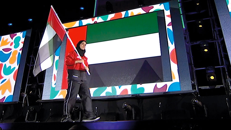 المازمي تحمل علم الإمارات في افتتاح أولمبياد الشباب